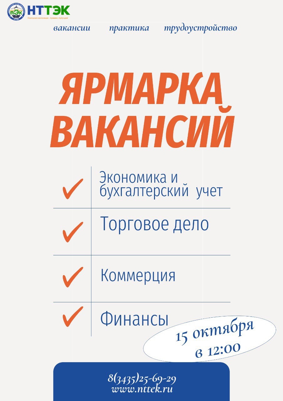 Приглашаем вас принять участие в Ярмарке вакансий, которая состоится 15 октября в 12:00. Это отличная возможность для вас найти талантливых студентов и выпускников, готовых внести свой вклад в развитие вашей компании.